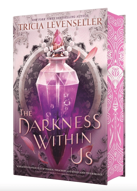 Featuring spray-painted and stenciled edges, a metallic foil case stamp, detailed map endpapers, a deleted scene and a ribbon, The Darkness Within Us is a wickedly delightful companion novel to Tricia Levenseller's The Shadows Between Us.